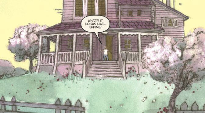 La historia sigue a Harvey Swick, de diez años, un niño aburrido de su vida cotidiana y del lúgubre mes de febrero. Será invitado por una misteriosa figura llamada Rictus a la Casa de Vacaciones del Sr. Hood. Un lugar mágico donde la primavera llega cada mañana, el verano llena las tardes, el otoño trae juegos y la Navidad llega cada noche antes de acostarse.